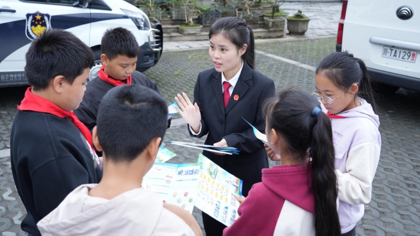 最受孩子欢迎的是“小小法治宣讲员”实践。他们佩戴上专属标识,在法官指导下,以“小导游”身份向“游客”宣传“在国道自驾骑行的小tips”“识别电信网络诈骗的小妙招”等实用知识。