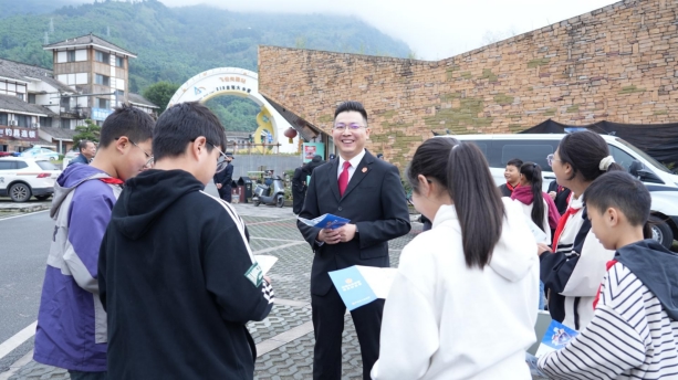 此次活动创新将法治教育与国道318线文旅资源相结合,既是芦山法院“文旅+法治”模式的生动实践,也是推动“法旅融合”的一次有益尝试。飞仙关打卡点作为川藏线上的重要节点,每年吸引大量游客驻足,法院在此开展未成年人普法,既借助了人流优势扩大宣传覆盖面,又通过“小手拉大手”带动游客关注法治文化,当孩子们开展宣讲时,不少现场游客也主动加入实践活动,与孩子们开展互动,现场普法氛围愈发浓厚。充分诠释了“法治是最好的营商环境”,也为文旅产业健康发展注入法治底色。