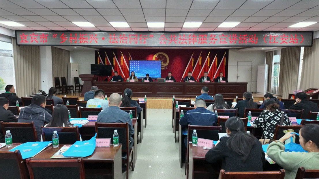 10月23日,宜宾市司法局联合宜宾仲裁委事务中心、宜宾市公证员协会、宜宾市司法鉴定人协会、四川发现(宜宾)律师事务所和四川酒都律师事务所律师组成公共法律服务宣讲团,深入江安县阳春镇开展“乡村振兴·法治同行”公共法律服务进乡村系列法治宣讲活动。