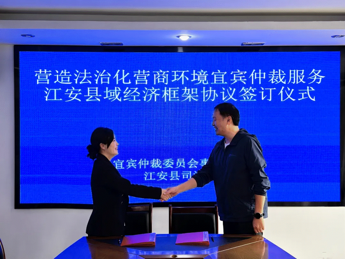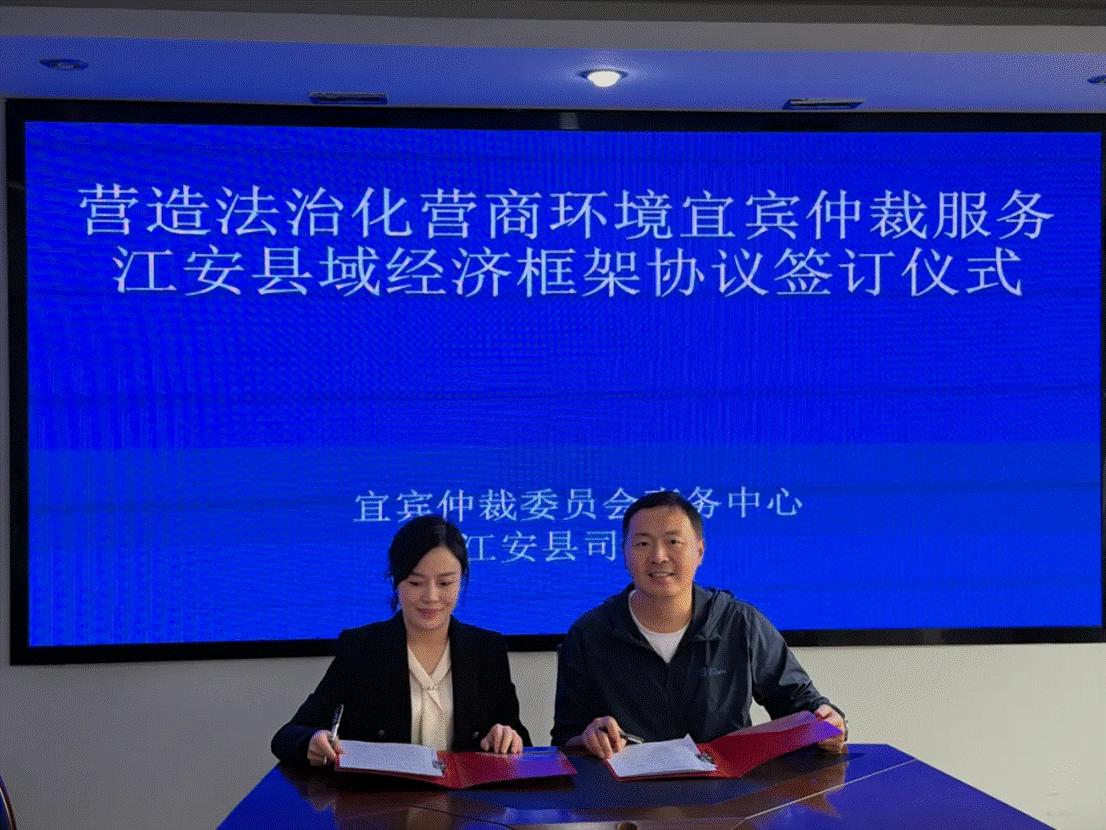 10月23日,宜宾仲裁委员会事务中心与江安县司法局签订《营造法治化营商环境 宜宾仲裁服务江安县域经济框架协议》。双方表示,将以协议签订为新起点,加强沟通协作,共同推动江安县法治化营商环境建设再上新台阶。
