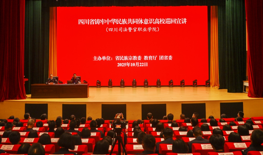 近日,由四川省民族宗教事务委员会、四川省教育厅、共青团四川省委主办的“铸牢中华民族共同体意识”高校巡回宣讲走进四川司法警官职业学院,持续深化学院师生中华民族共同体意识教育。四川省铸牢中华民族共同体意识高校巡回讲堂三年行动宣讲团成员、四川省文艺评论家协会秘书长、教授白浩为本次宣讲活动作专题报告。学院全体思政课教师、辅导员及学生代表共600余人参加活动。