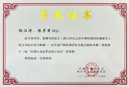 10月25日,由中国行为法学会执行行为专业委员会主办的第十三届“中国行为法学会执行论坛”评选结果揭晓,资阳市、区法院再创佳绩,共有3篇论文获奖。