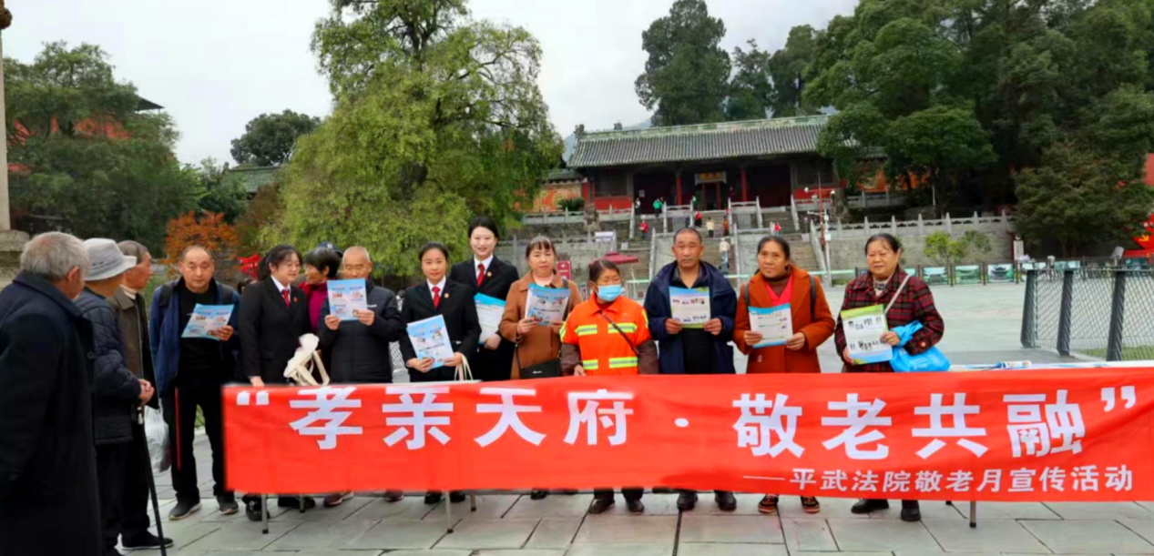 平武法院在县城报恩寺广场开展“孝亲天府·敬老共融”主题普法宣传活动。聚焦老年人常见法律问题,围绕赡养、继承、婚姻家事及防范养老诈骗等重点内容展开宣传。