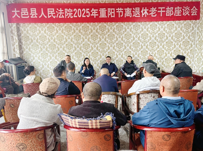 为弘扬中华民族尊老敬老爱老的传统美德,表达对离退休老干部的关怀与敬意,10月29日,大邑县法院专门举办了重阳节离退休干部座谈会。法院党组书记、院长陈松涛代表院党组及全体在职干警,向曾经为法院事业奉献青春与智慧的老同志们致以诚挚的节日问候和美好祝福,并对他们昔日奠定的坚实基础与作出的重要贡献表示衷心感谢。与会老干部们欢聚一堂,抚今追昔,气氛温馨而热烈,大家共同回顾往昔峥嵘岁月,畅谈法院发展新貌,真挚的情谊与殷切的祝福交织回荡,充分体现了法院大家庭的人文关怀与传承精神。