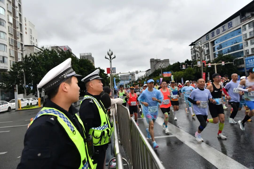 此次安保工作以“安全至上、依法管理、科学实施”为总原则,围绕“万无一失”目标,秉持“细致、精致、极致”作风,强化“主战、主防”责任,还严格遵循“专业化、社会化、封闭化”原则构建全域覆盖体系。值得一提的是,来自全国各地公安民警组成的西马警察“护跑团”格外亮眼,他们既是参赛选手,更是“赛道流动安全官”,全程助力安保、救助与秩序维护。