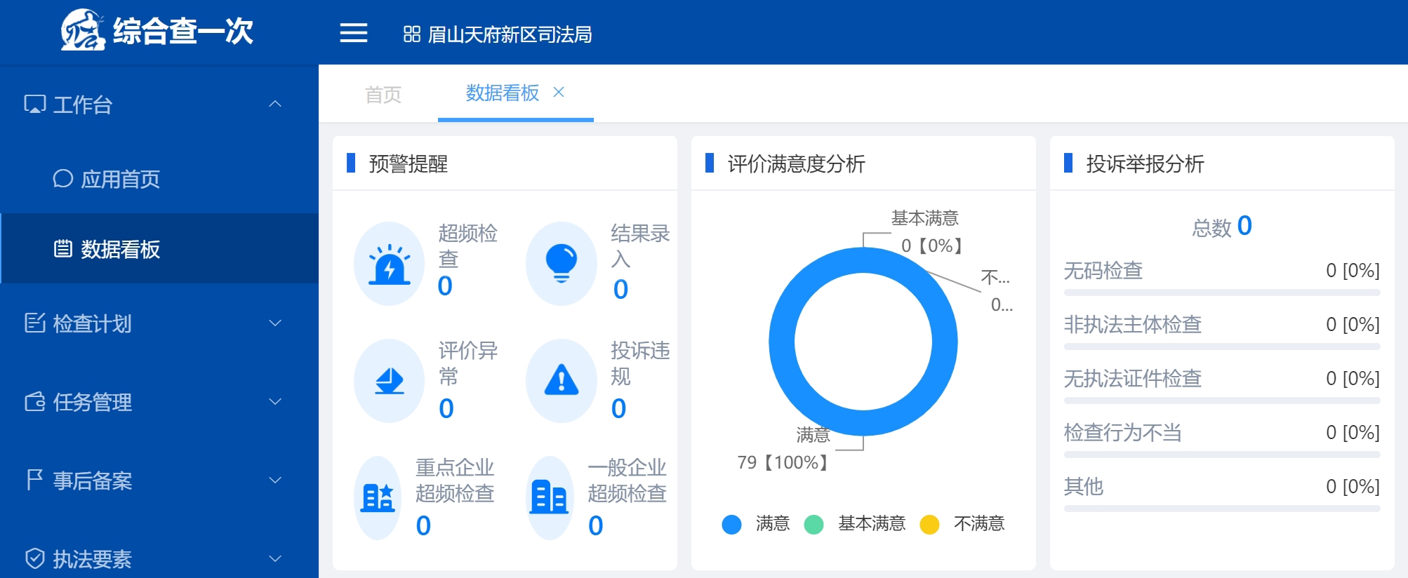 眉山天府新区积极推广运用“综合查一次”服务平台,集成21个行政执法主体、412名执法人员、420项行政检查事项和13619个经营主体数据,实现了信息互联共享。