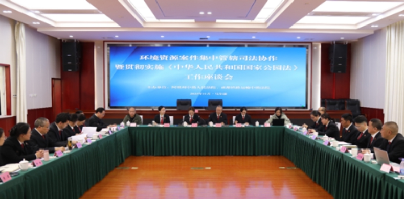 11月4日,阿坝中院与成铁中院联合召开环境资源案件跨行政区划管辖司法协作暨贯彻实施《中华人民共和国国家公园法》工作座谈会。