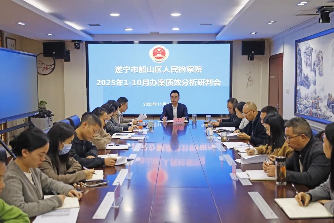 11月7日,遂宁市船山区检察院召开2025年1-10月办案质效分析会,船山区检察院党组书记、检察长陈俊欣主持会议并讲话。会议传达了全市检察机关办案质效分析会精神,通报了船山区检察院1-10月案件质效,各业务部门围绕重点问题进行深入剖析、查找不足,并结合实际提出下一步工作举措。