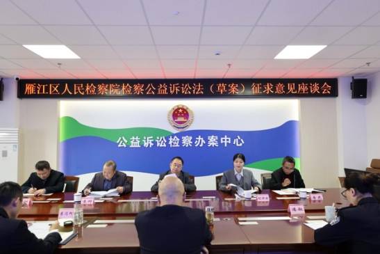 资阳市雁江区人民检察院于11月10日下午举办《中华人民共和国检察公益诉讼法(草案)》征求意见座谈会。本次会议以“凝聚多方智慧,共护公益初心”为主题,邀请了区人大代表、政协委员、“益心为公”志愿者代表、相关行政机关代表等多方力量齐聚一堂,共同为检察公益诉讼立法建言献策。