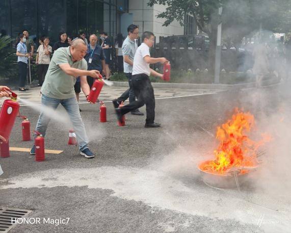 “弯腰、捂口鼻、靠右快速疏散!”在模拟火情实战演练现场,员工们反应迅速、操作规范,仅用2分15秒便完成全员有序撤离,应急处置能力得到实战检验;户外灭火实训环节,员工们在教官指导下精准掌握灭火器“提、拔、握、压”操作要领,在“真烟真火”场景中熟练运用初期火灾扑救技巧。“以前只懂理论,现在亲手实操后,不仅能守好企业安全,遇到社区火情也能搭把手!”参与员工的真切感受,正是活动“企业实训、社会受益”理念的生动写照。活动同步设置消防物资展示区,通过防火毯、逃生面罩等器材的实操讲解,让员工全面掌握家庭、邻里场景下的实用防护技能,实现安全能力从“岗位”向“生活”的延伸。