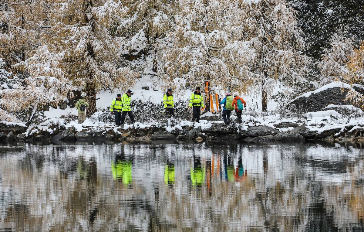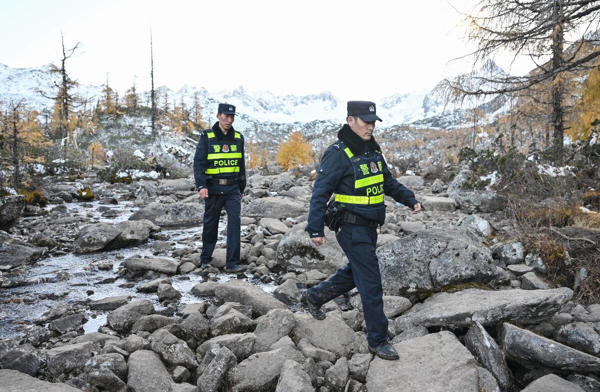 党岭穿越路线位于甘孜州丹巴、道孚两县交界处,因为交通不便,多年来一直保持着原始的模样,以雪山、海子、彩林和藏寨构成的诗意画卷吸引着无数游客慕名而来,机动车穿越、高原徒步渐成潮流。尤其是今年,户外徒步爱好者更是纷至沓来,但其中不乏有缺乏高原徒步经验的游客,他们盲目闯入未知路线,往往在寒风中突发高反,在暴雪里濒临失温,生命安全岌岌可危。此时,丹东派出所的民辅警们,便成了这片高原上最可靠的“迷途引路人”。