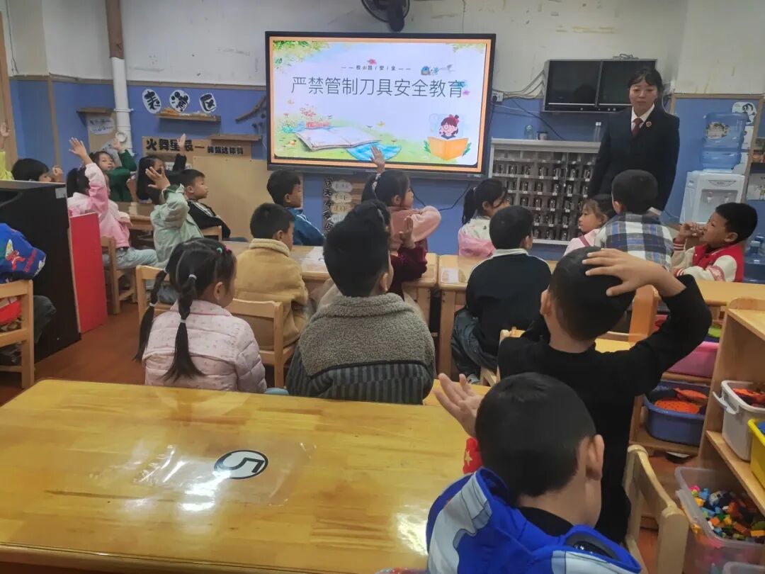 为调动学生的参与热情,现场还设计了趣味互动环节。“谁知道过马路时不能做什么呀?”“谁知道灭火器是怎么使用的呢?”,检察干警的话音刚落下,学生踊跃抢答,现场气氛热烈,在一问一答间,法治的种子在孩子们心中悄然生根发芽,鼓励学生从身边小事做起、从自身做起,做一名知法、懂法、守法、用法的学生,真正实现了“寓教于乐学安全”。