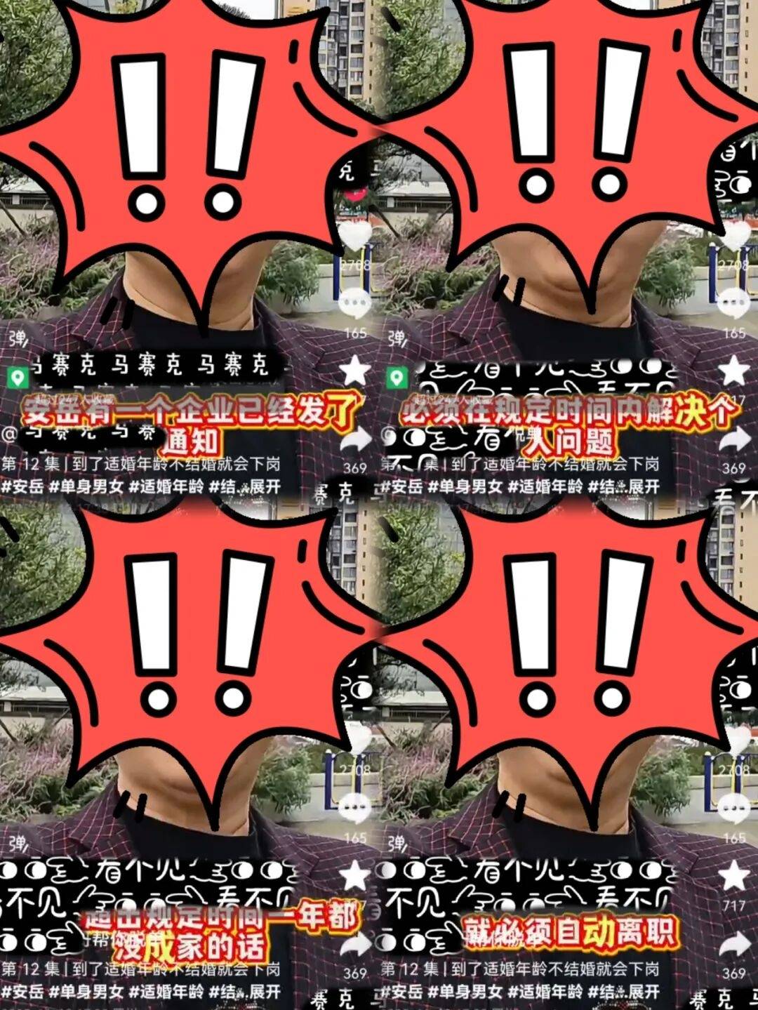 “各位单身贵族们!你们不结婚,铁饭碗将不保?你们慌不慌???谁在这个企业出来说说啊!”2025年11月13日,安岳县公安局网络安全大队民警在工作中发现一社交账号11月12日在社交平台发布“安岳某企业要求员工到适婚年龄后不在规定时间内解决个人问题将被公司辞退“的视频内容。