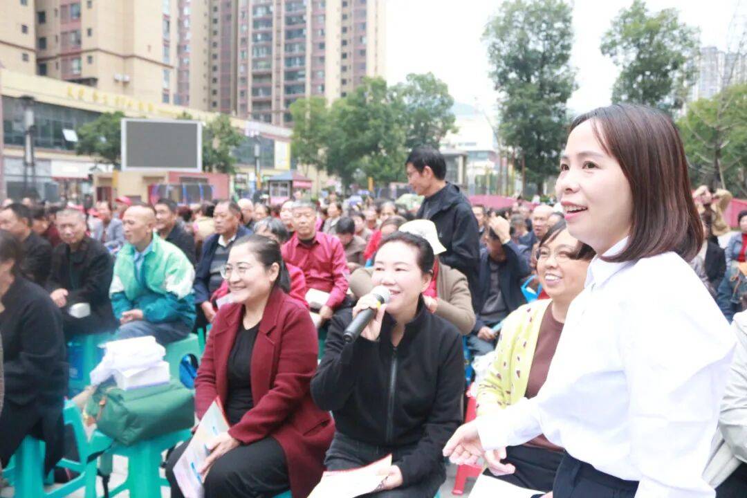 上午9时30分,四渡赤水文化广场座无虚席,来自彰德街道的民营企业代表及社区居民、退休老干部代表300余人齐聚一堂。古蔺县法学会法律咨询专家、四川滨河律师事务所律师马丹解读了《民营经济促进法》。“坚决遏制乱罚款、乱检查、乱查封等行为,乱罚款要不得!”互动答疑环节,退休干部李女士针对专家提出的问题迅速举手回答,现场发放的《民营经济促进法》宣传单被快速传阅。