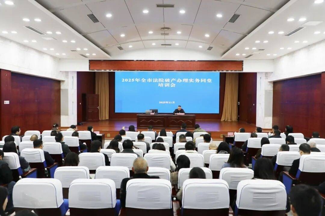 11月18日,2025年广安市破产办理实务同堂培训会在市中级法院举办。广安市中级法院审判委员会专职委员黄建主持。广安市中级法院民二庭全体员额法官,各基层法院破产审判人员及广安市破产管理人代表共100余人参加培训。