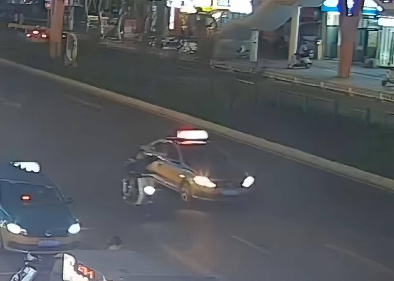 ▲情侣骑电瓶车将嫌疑人乘坐的出租车拦下