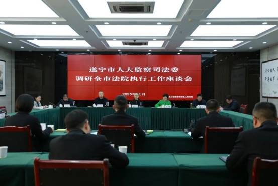 11月20日,遂宁市人大常委会副主任胡道军率队专题调研全市法院执行工作,并召开座谈会听取相关汇报。遂宁市中级人民法院党组书记、院长马峻峰陪同调研。