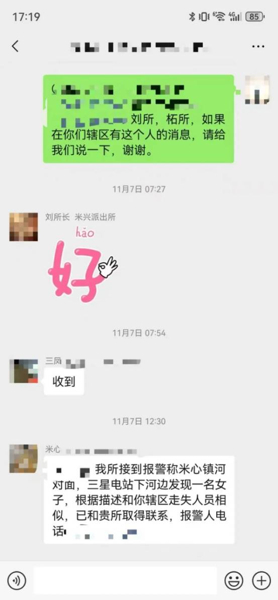 老池派出所接警后连夜出动,一边沿路搜寻,一边通过“遂潼毗邻地区水上警务合作中心”工作群通报米心镇派出所、蓬溪三凤镇派出所及相邻村社协助寻人。