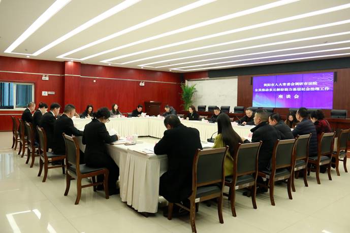 调研组一行先后到市综治中心、审判事务中心等地,通过实地查看、听取介绍,认真了解市法院开展多元解纷工作情况。随后,调研组在市法院召开座谈会。党组书记、代理院长冷雅民从强化协同治理、发挥司法职能、延伸司法触角等三个方面汇报了法院近年来多元解纷工作情况及取得的成效,剖析了目前工作存在的问题并提出下一步工作举措。