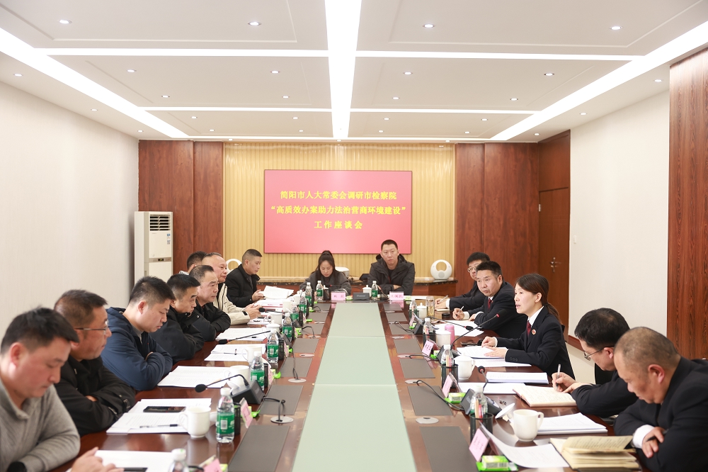 11月27日,简阳市人大常委会党组副书记、副主任周靖带领部分人大常委会委员、监司委委员和企业代表,对市检察院高质效办案助力法治营商环境建设工作情况进行专题调研。市检察院代理检察长申莉萍陪同调研。