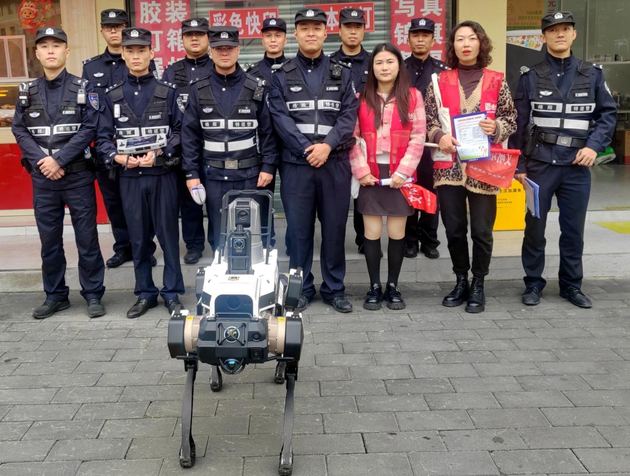 除反诈防骗、文明养犬等法治宣传外,一台与民警协同工作的警用“机器狗”成为了活动中的焦点。它不仅是科技强警的展示,更是“警社联动”模式的创新体现。民警操作它演示巡逻,社区工作者利用它聚集人气,双方默契协作,将科技热度转化为公众的学习热情,让文明养犬和反诈知识在寓教于乐的氛围中深入人心。
