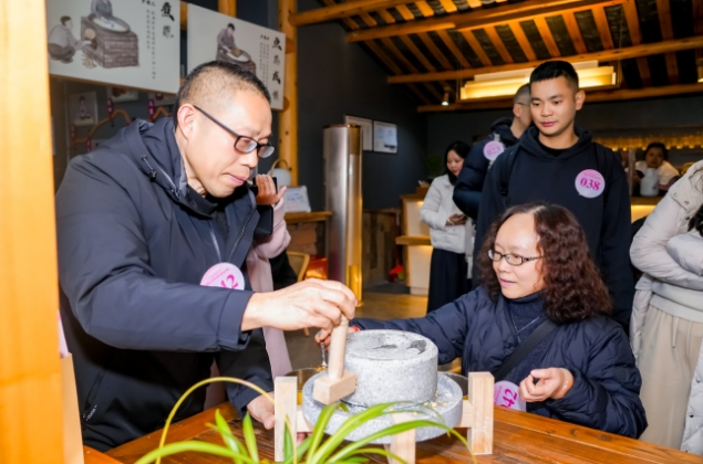 活动现场,传统迎亲队伍的锣鼓声回荡在青石巷陌中,花轿巡游引来阵阵欢笑;石磨坊里飘出阵阵豆香,一对对伴侣携手体验磨豆浆的乐趣;幸福书坊的拓印体验,将诗词拓印成独一无二的幸福信物;登山步道上,爱侣们在520米与1314米的里程碑处驻足留念,用脚步丈量“我爱你一生一世”的浪漫承诺。这段从祈福、迎亲、劳作到同行的旅程,串起了非遗的鲜活、农耕的质朴、文化的传承与山野的诗意,让爱意在山谷田园间自然生长。