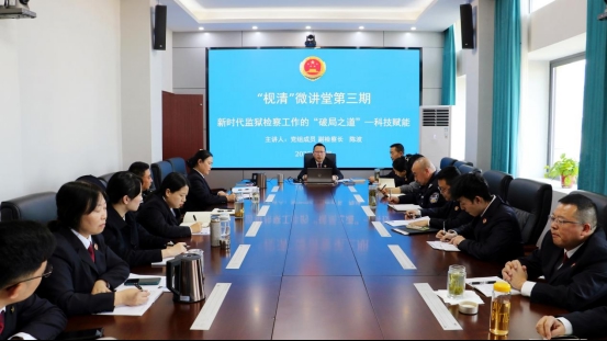 11月28日,绵阳市小枧地区检察院举办“枧清”微讲堂第三期活动,党组成员、副检察长陈波担任本期主讲。他以《新时代监狱检察工作的“破局之道”——科技赋能》为题,结合检察工作实际,围绕科技赋能刑事执行检察的战略定位与核心方向,借鉴全国优秀实践案例,从“四个维度“”勾勒出小枧地区检察院科技赋能落地的具体思路。