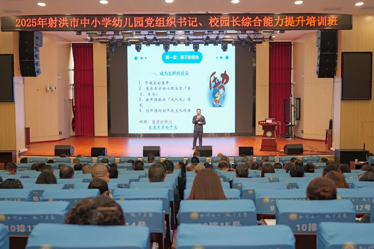 为进一步凝聚未成年人保护合力,强化教育系统的法治意识与履职能力,11月5日上午,射洪市人民检察院党组成员、副检察长夏军为全市中小学、幼儿园的党组织书记、校园长开展综合能力提升培训,给全体参训学员带来了一堂“法治与关爱并行,呵护我们的‘未来’”未成年人保护专题法治讲座。