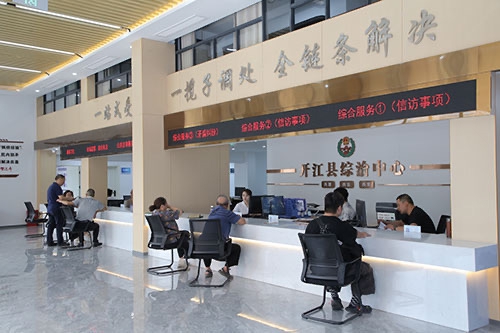 走进综治中心,引导受理、分析研判、多元化解、指挥调度四大功能区布局清晰、运转高效。信访局、公共法律服务中心整体入驻,与诉讼服务、检察服务、群众接待中心等平台深度融合,真正实现群众办事“只进一扇门、最多跑一地”。