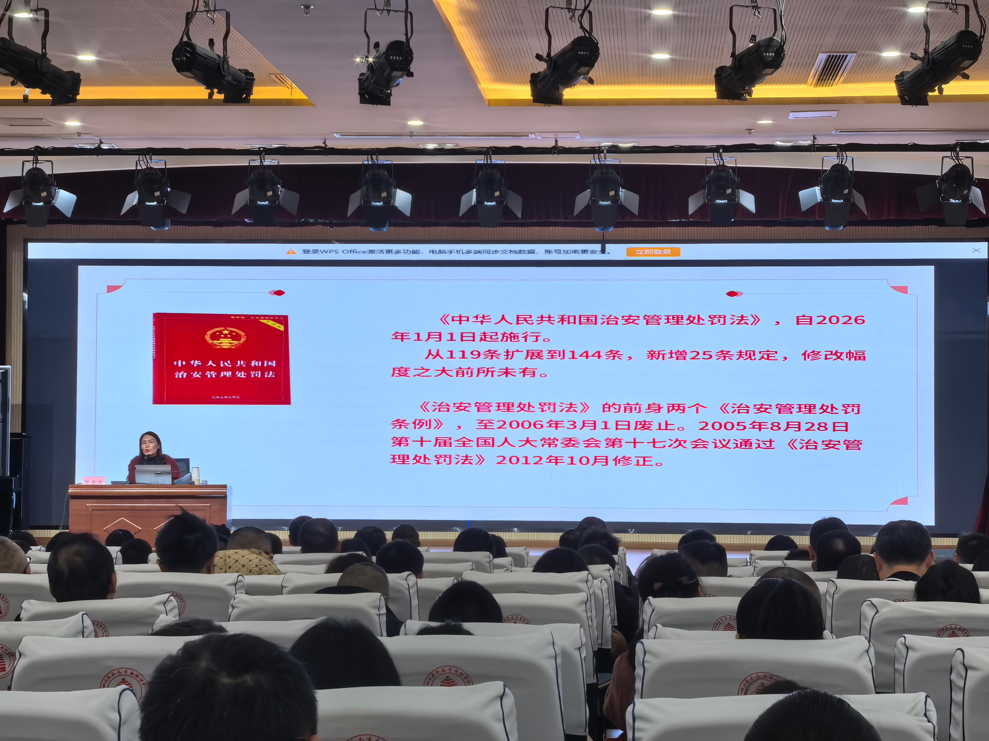 本次活动由高坪区政法委牵头组织,区教育局和体育局、区妇联、区法学会联合承办,旨在深入贯彻党的二十届三中全会精神,全面落实省法学会“百名法学家百场报告会”部署,推动新修订《治安管理处罚法》在高坪区未成年人保护工作中落地落实。