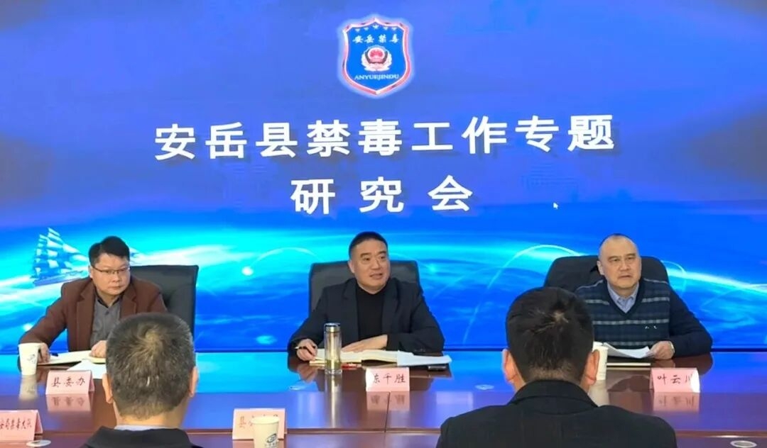12月1日,安岳县禁毒工作专题研究会召开。县委常委、政法委书记陈千胜主持会议并讲话。县政府副县长、县公安局局长叶云川出席会议。县委办公室、县委政法委、县公安局、县财政局相关负责同志参加会议。