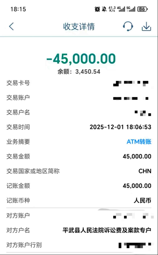 当日15时许,黄某被拘传至平武法院执行局配合调查,面对执行法官,黄某当场表示自己愿意履行余下的借款,之前未及时履行是自身对于执行措施了解不足导致。18时许,黄某在法院账户汇入案款4.5万元,至此该案宣告执行完毕。执行干警对黄某进行释法明理,黄某表示后续将通过诉讼途径解决其与赵某的其他经济纠纷。