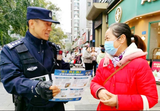 4日上午特巡警巡逻四大队民警在辖区向市民宣传防诈反诈知识