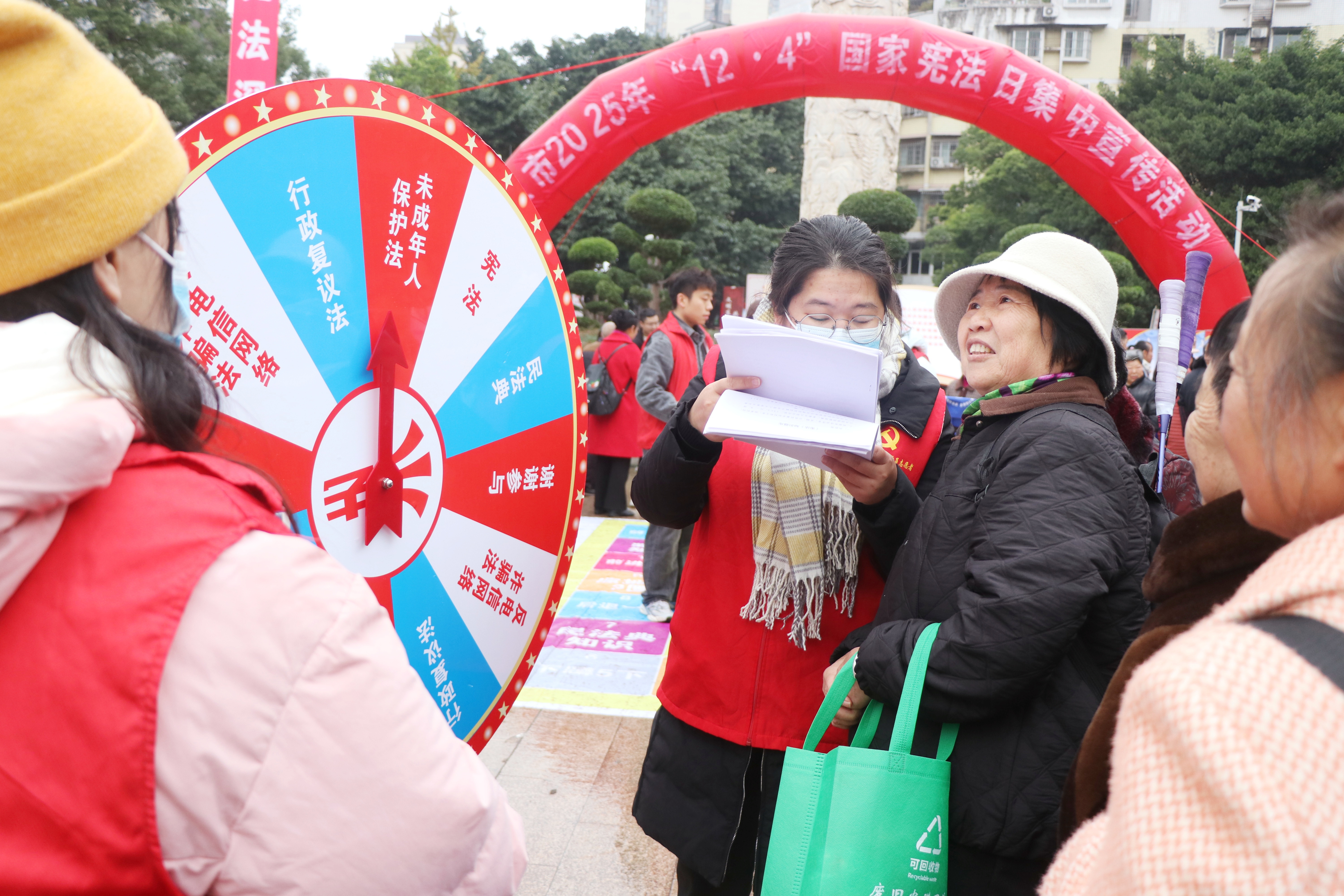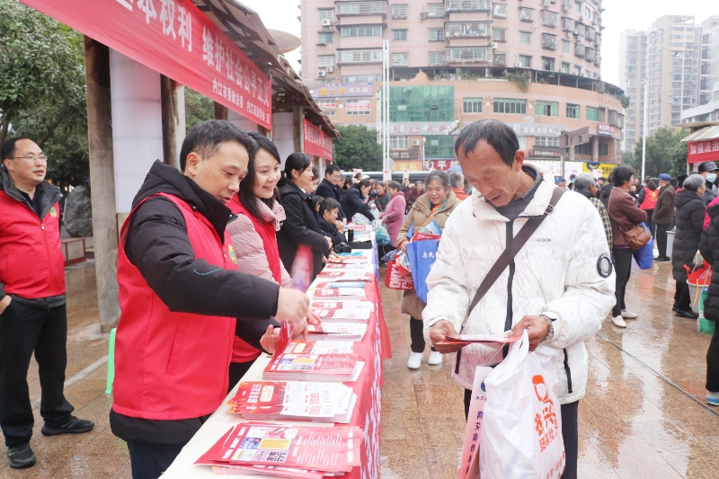 为弘扬宪法精神,营造尊法学法守法用法浓厚氛围,12月4日,内江市、东兴区市区联动,在东兴区和平桥广场开展2025年“12.4”国家宪法日暨宪法宣传周集中宣传活动。内江市级政法单位及东兴区有关单位、人民团体等30余个单位(部门)参加宣传。