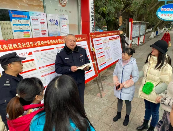 作为街头平安的“第一道防线”,绵阳特巡警巡逻三大队立足“直面群众、响应迅速”的勤务优势,创新打造“定点宣传+流动宣讲”双轨模式。在人民公园、五一广场、富临大都会新百盛超市等流量密集区域,民辅警提前搭建宣传展台,摆放“宪法与民生保障”“反诈普法小课堂”等主题展板12块,通过真实案例剖析、法律条文图解等形式,直观呈现宪法对公民人身权、财产权、劳动权的保障内容。宣传现场,民警还结合日常执法案例,用“接地气”的语言讲解电信网络诈骗、养老诈骗的常见手段及防范要点,演示遇到紧急情况时的求助流程和自我保护技巧,现场互动答疑氛围热烈。