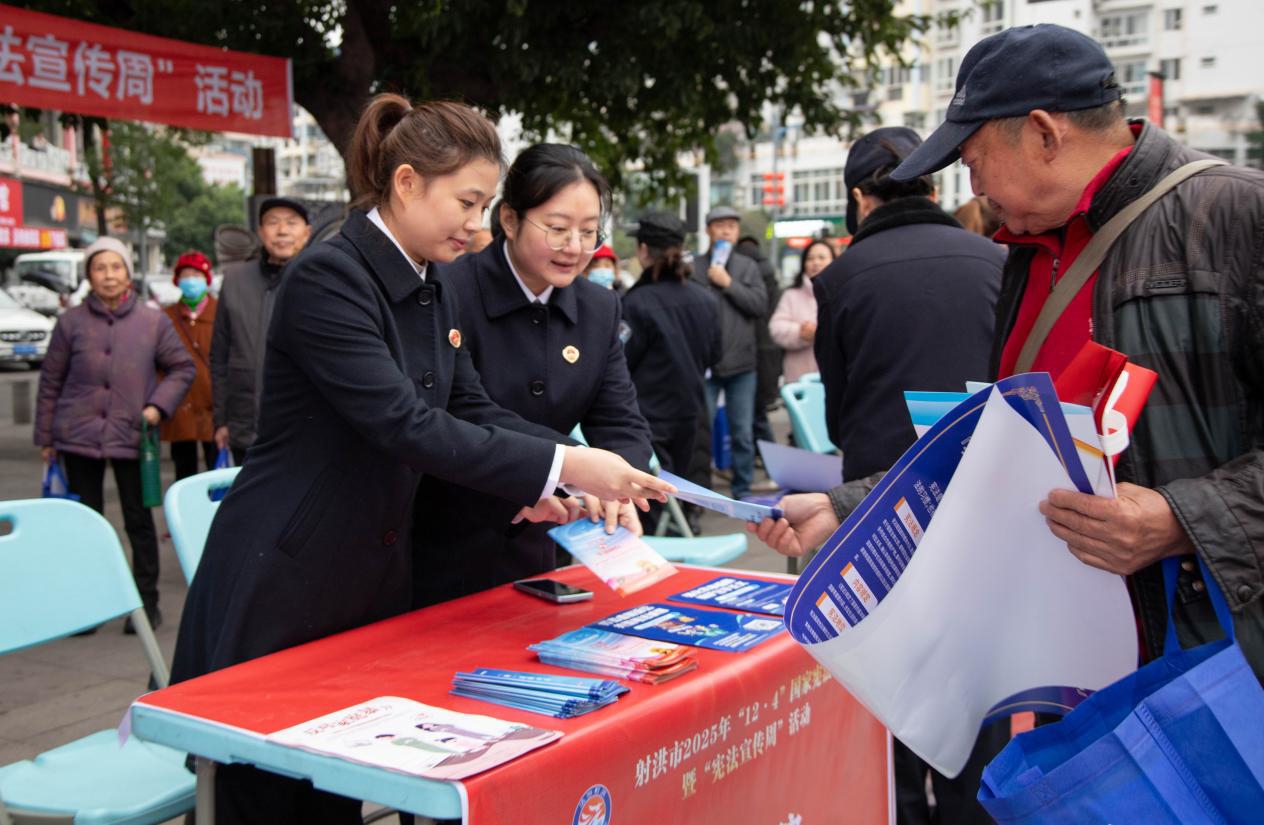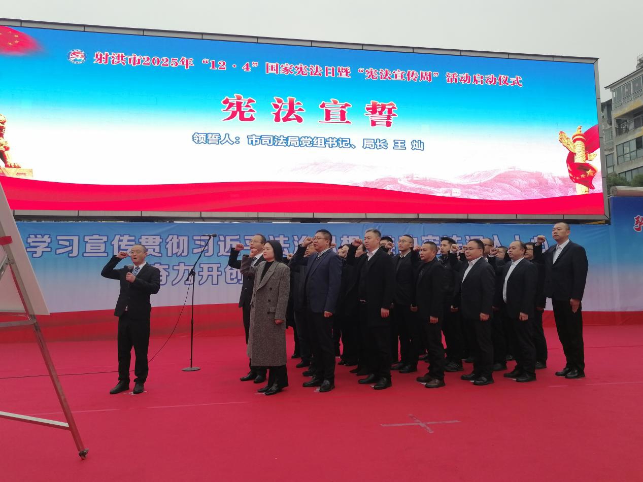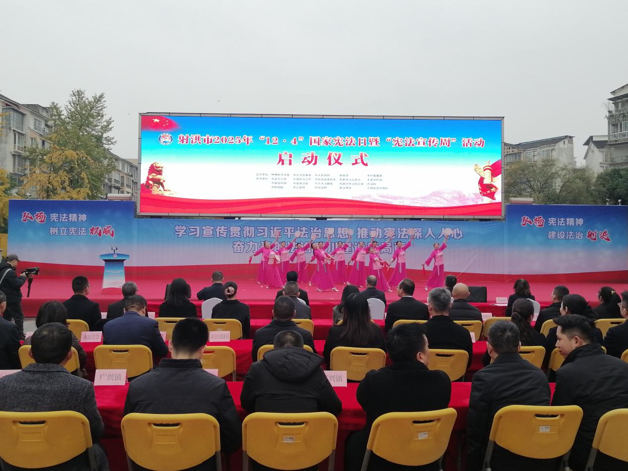 为深入学习宣传贯彻习近平法治思想,推动宪法深入人心,奋力开创法治四川建设新局面,筑牢射洪高质量发展和现代化建设法治根基,12月4日,射洪市2025年“12·4”国家宪法日暨“宪法宣传周”活动启动仪式在三江情广场举行。市人大常委会党组书记、主任邓茂,市委常委、政法委书记、市委依法治市办主任文加武,市人大常委会副主任何朝阳,市政协副主席李元红出席仪式,副市长、市公安局局长唐锐主持仪式。