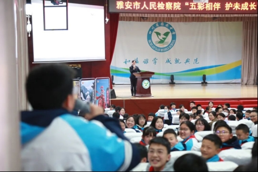 12月4日,雅安市检察院在雅安中学举办“五彩相伴·护未成长”宪法宣传进校园活动。市妇联、市关工委、市教育局等有关负责同志,相关学校主要负责同志、省、市人大代表、政协委员、雅安中学初一年级全体师生等400余人参加活动。