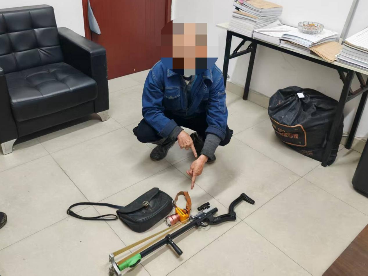 近日,该森林警察大队民警在什邡市马祖镇巡逻时发现一树林传来异响,民警迅速分工协作,悄悄靠近树林区域果断出击,将正在非法狩猎的一男子抓获,现场查获弹弓1把,被猎杀的伯劳鸟1只。经查,被抓获男子张某某使用的弹弓属于危害性较大的禁用狩猎工具,且事发地是禁猎区,时间也在禁猎期内。此行为涉嫌非法狩猎罪,已被公安机关依法采取刑事强制措施,案件正在进一步侦办中。