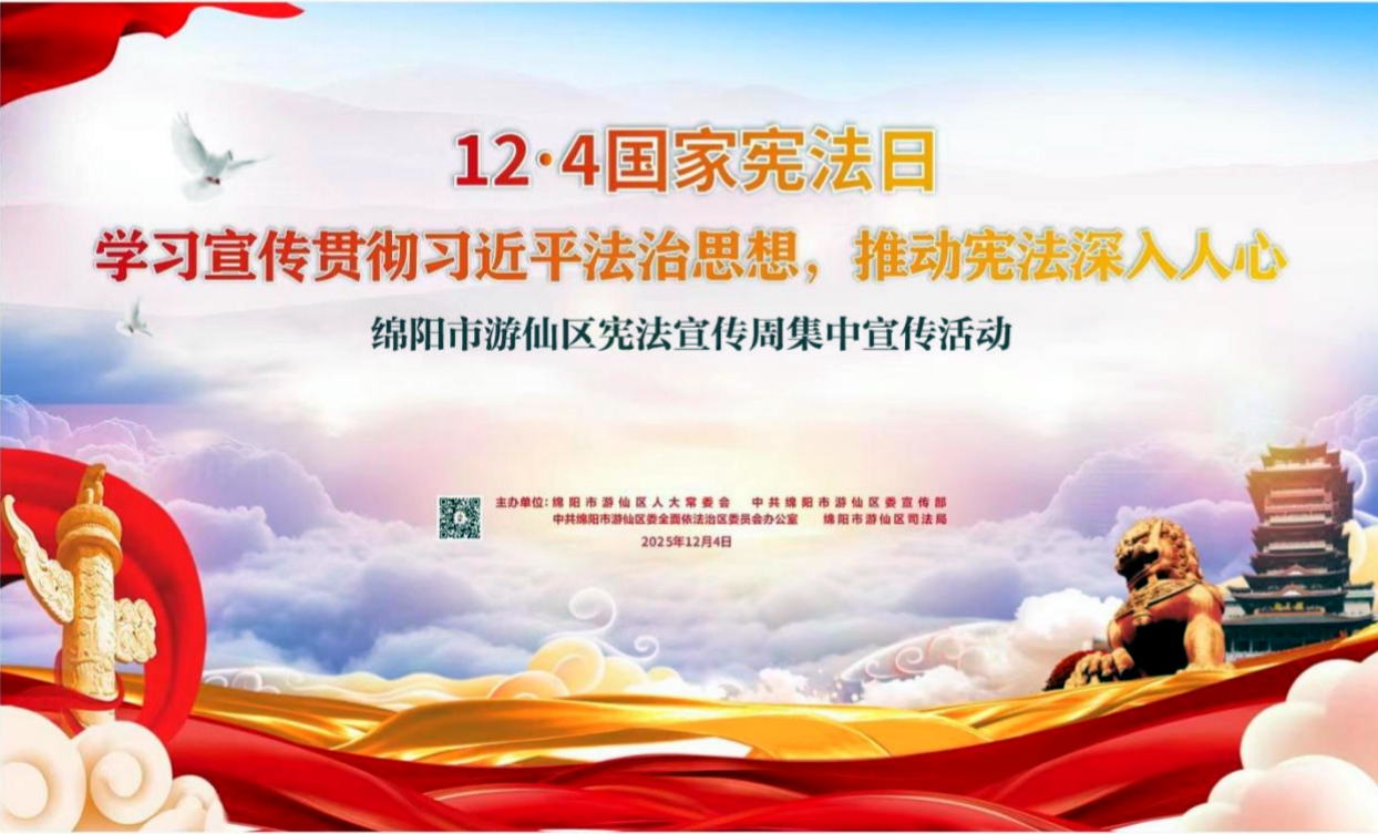 12月1日至7日,是第八个“宪法宣传周”。绵阳市游仙区紧扣“学习宣传贯彻习近平法治思想 推动宪法深入人心”主题,“线上+线下”双轮驱动、多部门协同联动,将抽象法律条文转化为群众可感可知的生活指引,让法治精神根植于民心,为“八五”普法规划收官之年筑牢坚实法治根基,让法治精神在游仙城乡大地落地生根。