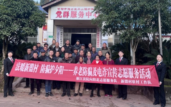 在“12·5”国际志愿者日来临之际,资阳市雁江区人民法院向阳花志愿服务队联合乡村振兴工作队,分赴丹山镇新盟村、胡家祠村开展“银发防骗 法护夕阳”养老防骗及电诈宣传志愿服务活动,为当地60岁以上老年人送上贴心的法律“护身符”。