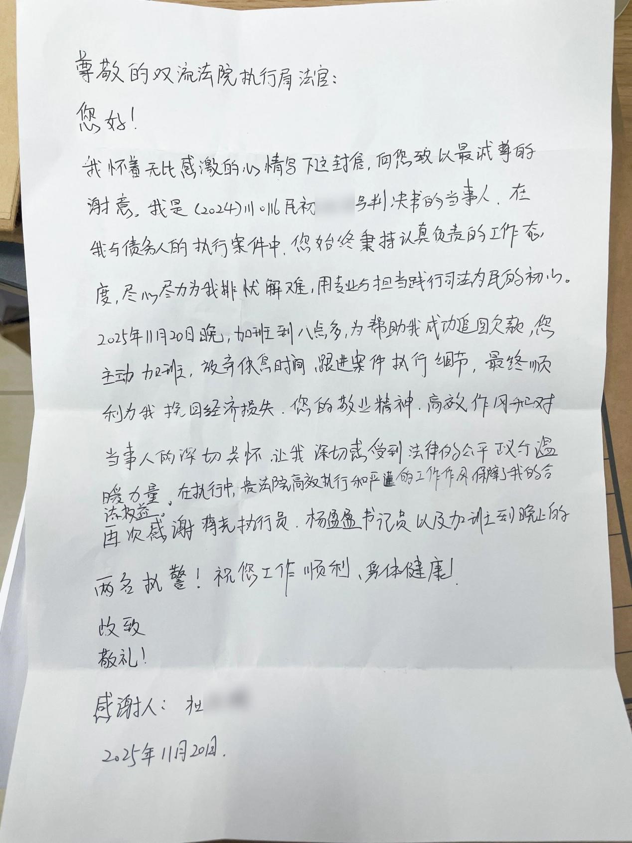 在此次“百日执行攻坚”专项行动中,双流区法院以雷霆之势,集中解决了一批执行难案、“骨头案”。下一步,双流区法院将持续保持执行高压态势,深化执行联动机制,创新执行方法,对拒不履行生效法律文书确定义务的行为依法予以打击,努力让人民群众在每一个司法案件中感受到公平正义,切实维护司法权威和社会诚信体系。