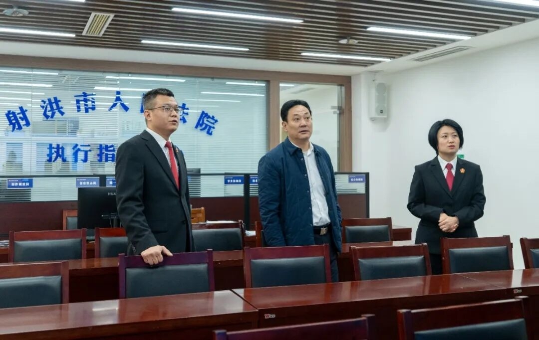 12月10日,射洪市委常委、政法委书记文加武率调研组一行赴射洪法院调研指导工作,射洪法院党组书记、院长周素全陪同调研。调研组一行实地调研了法院的执行配套建设与内部保障建设。随后,召开调研座谈会,院领导班子和相关负责同志参加。