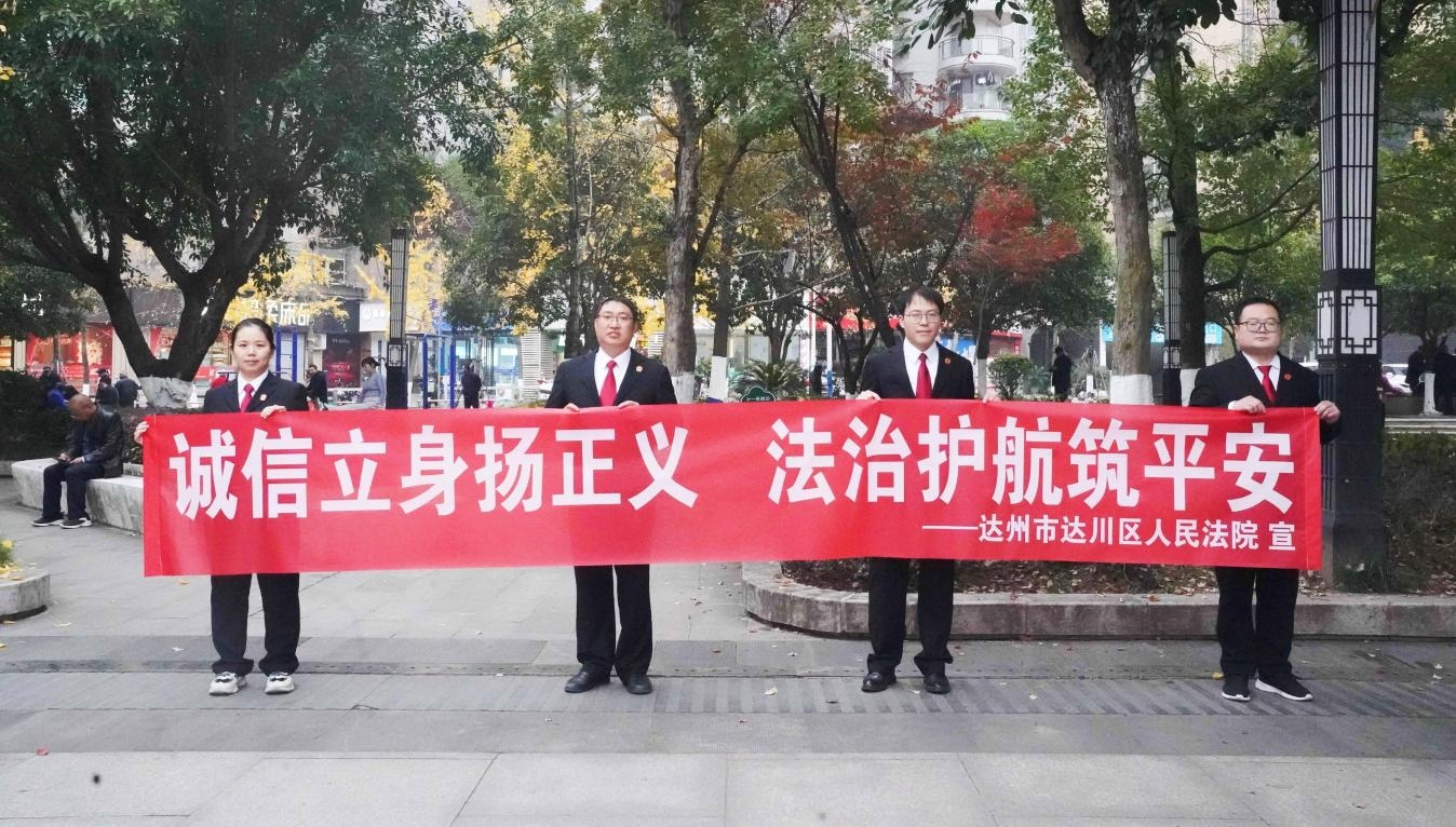 12月9日,达州市达川区法院在天益广场举办“诚信立身扬正义,法治护航筑平安”主题宣传活动,通过面对面讲解、现场答疑等方式,提升群众诚信意识与法治观念。