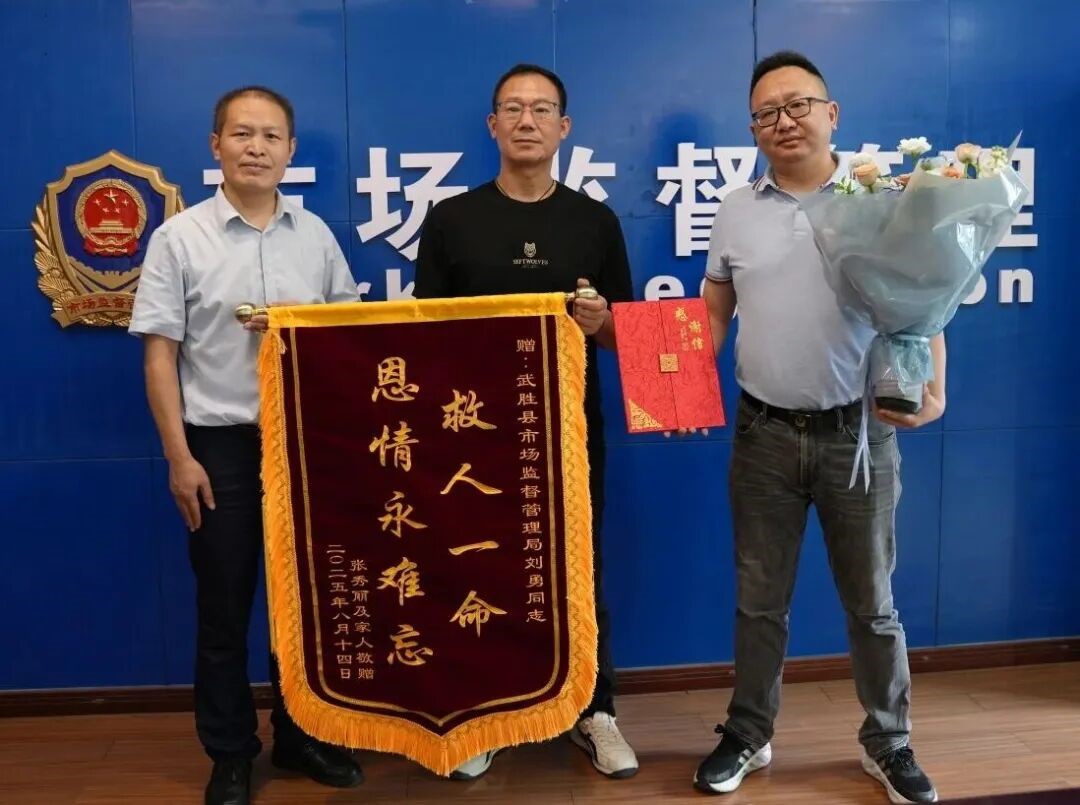 “危难时刻显担当,不是亲人胜亲人!”张秀丽家属在感谢信中动情地写道。在邀请聚餐、赠予财物等被拒绝后,为了表达对刘勇的感激之情,他们特意制作了印有“救人一命,恩情永难忘”的锦旗,连同感谢信一同寄往武胜县市场监督管理局,希望让更多人知晓这份跨越千里的善意与勇敢。