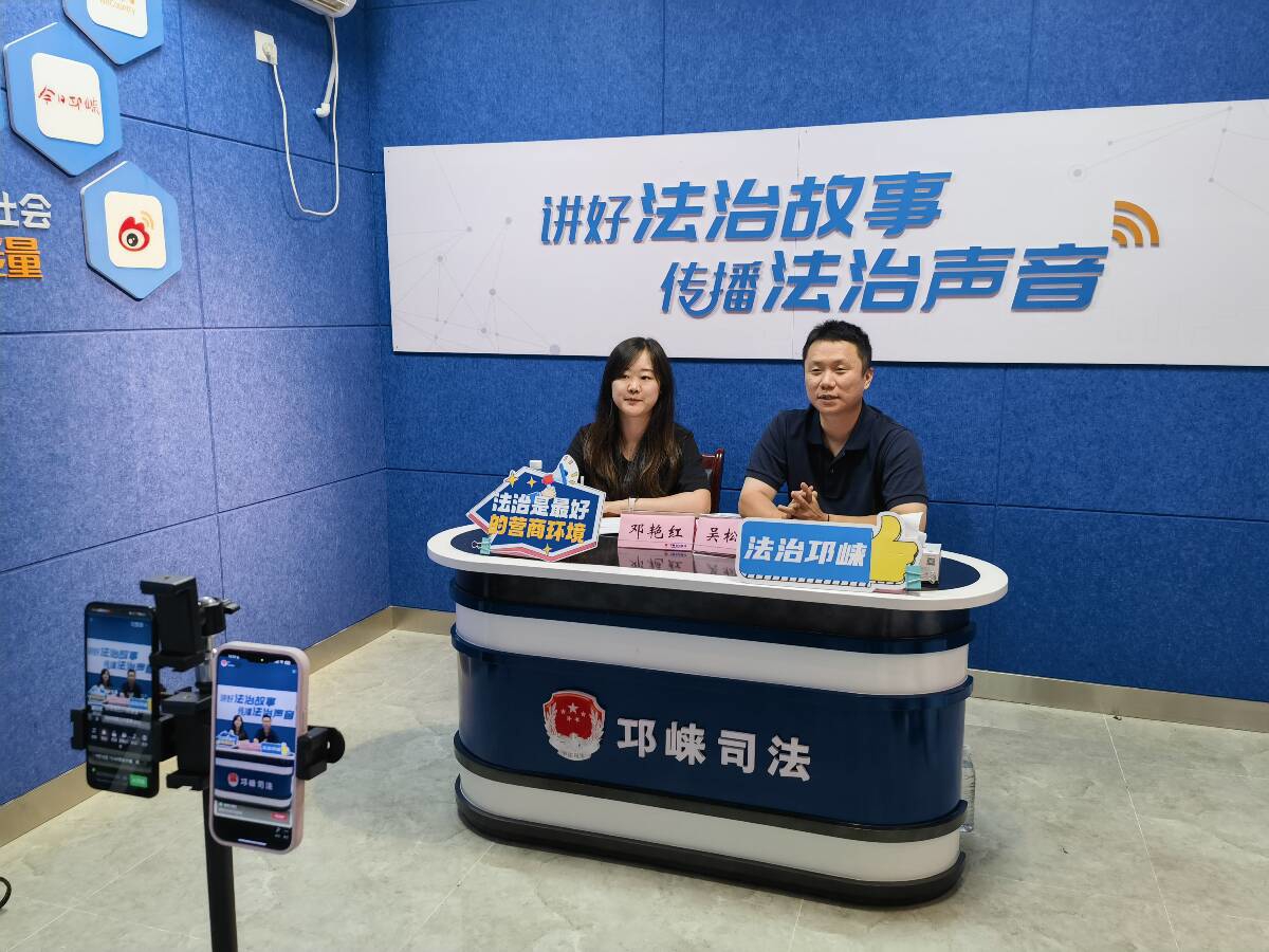 邛崃市开通线上专栏,通过直播和定期发布涉企法律知识等形式,提高服务便捷性和传播度。图为开展“法律明白人”微课堂直播暨一码检查专题直播