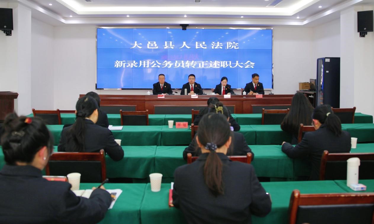 12月4日,大邑县法院组织召开新录用公务员转正述职会议,旨在进一步加强法院人才队伍建设,激发青年干警履职尽责、担当作为的热情。该院在家院领导、中层干部代表与八名新录用公务员共同参加。会上,八名青年干警依次就试用期期间的工作表现、学习收获与未来规划进行述职汇报,并接受现场提问。