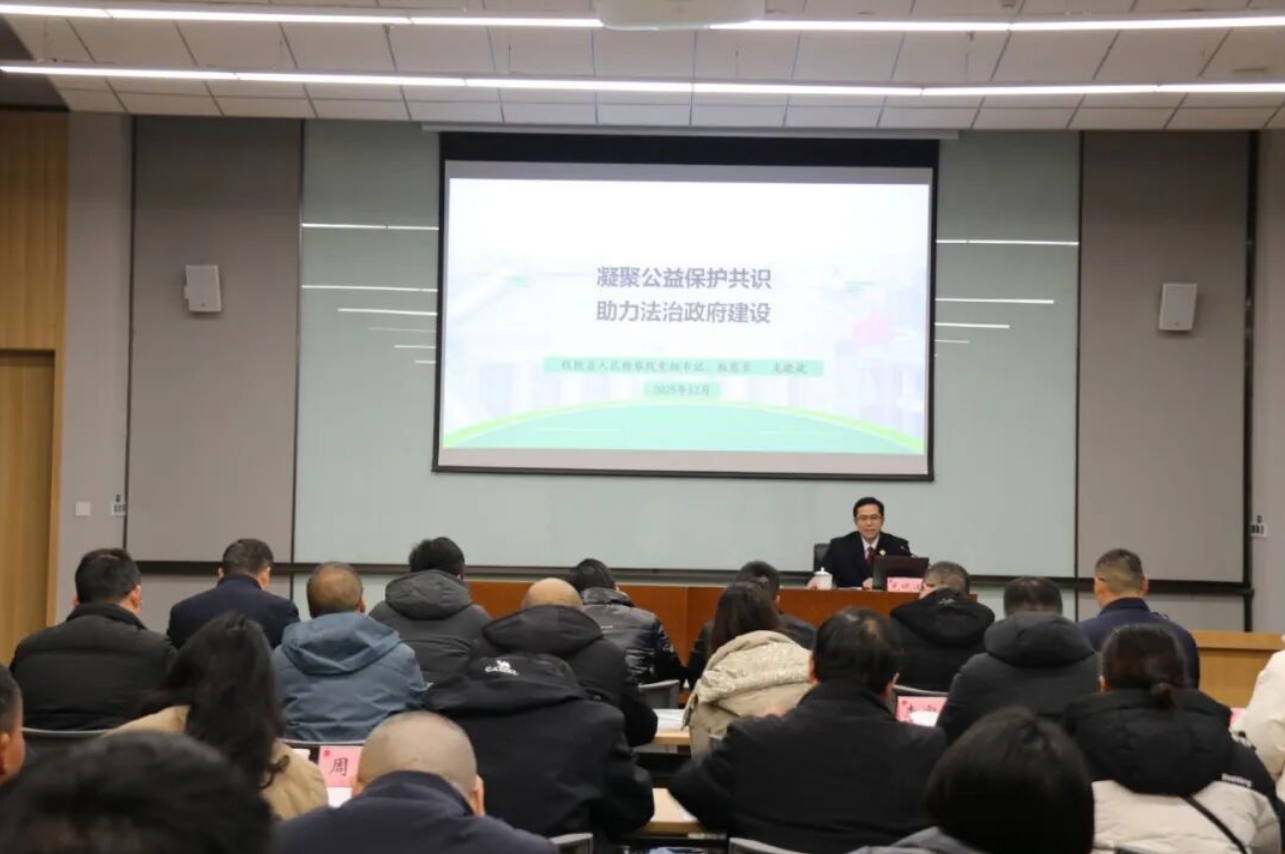 12月24日,仪陇县检察院党组书记、检察长龙晓波受邀走进张思德干部学院,以《凝聚公益保护共识 助力法治政府建设》为题,为仪陇县职级公务员培训班的60名参训学员作专题授课。