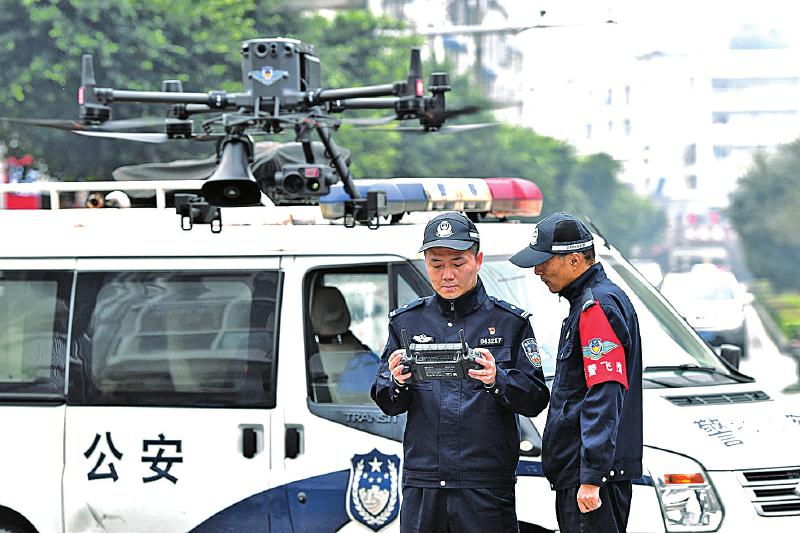 夹江公安民警操作无人机现场