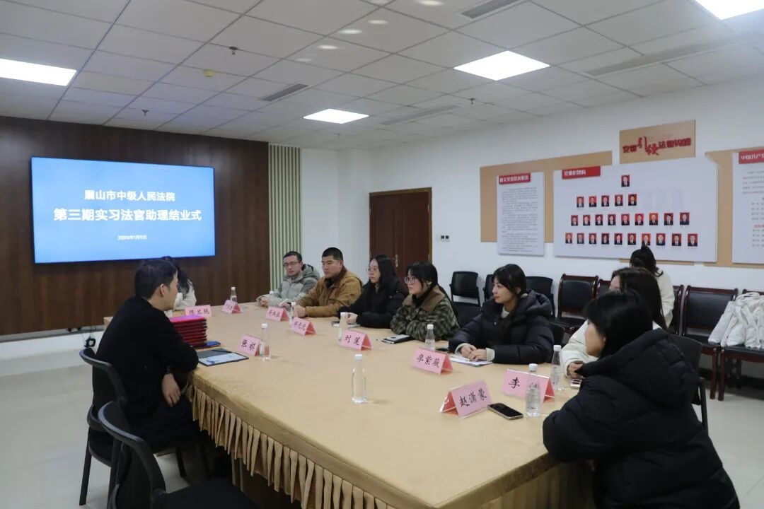 1月9日,眉山中院组织召开第三期实习法官助理结业仪式。院党组成员、政治部主任、机关党委书记张祺参加并主持会议。会上,来自西南石油大学和西南政法大学的8名实习法官助理依次分享了6个月以来实习心得体会。