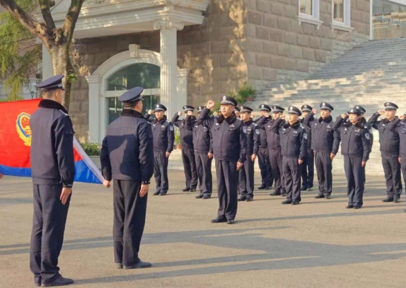 全体干警在庄严的警旗下举行司法警察宣誓仪式,重温入警誓词,誓言铿锵有力,彰显了资阳法院司法警察队伍对党忠诚、服务人民、执法公正、纪律严明的坚定信念。